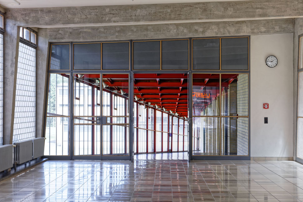 Arthur Redecker (Foto), Eingangshalle: Tür zum Glasgang, Speisesaal und Aula, 1930, Archiv baudenkmal bundesschule bernau e. V., © unbekannt