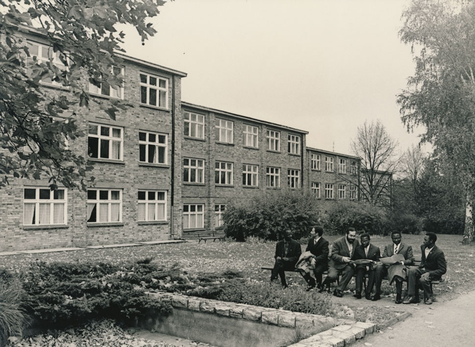Unbekannter Fotograf, Studenten der GHS „Fritz Heckert“ im Gespräch, 1970er Jahre, Archiv baudenkmal bundesschule bernau e. V.