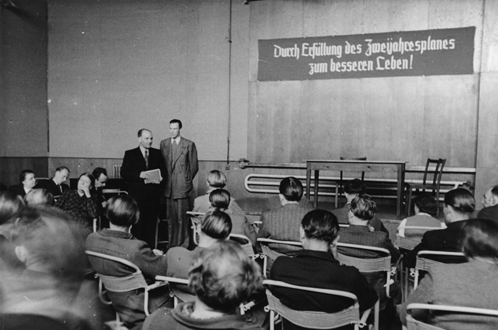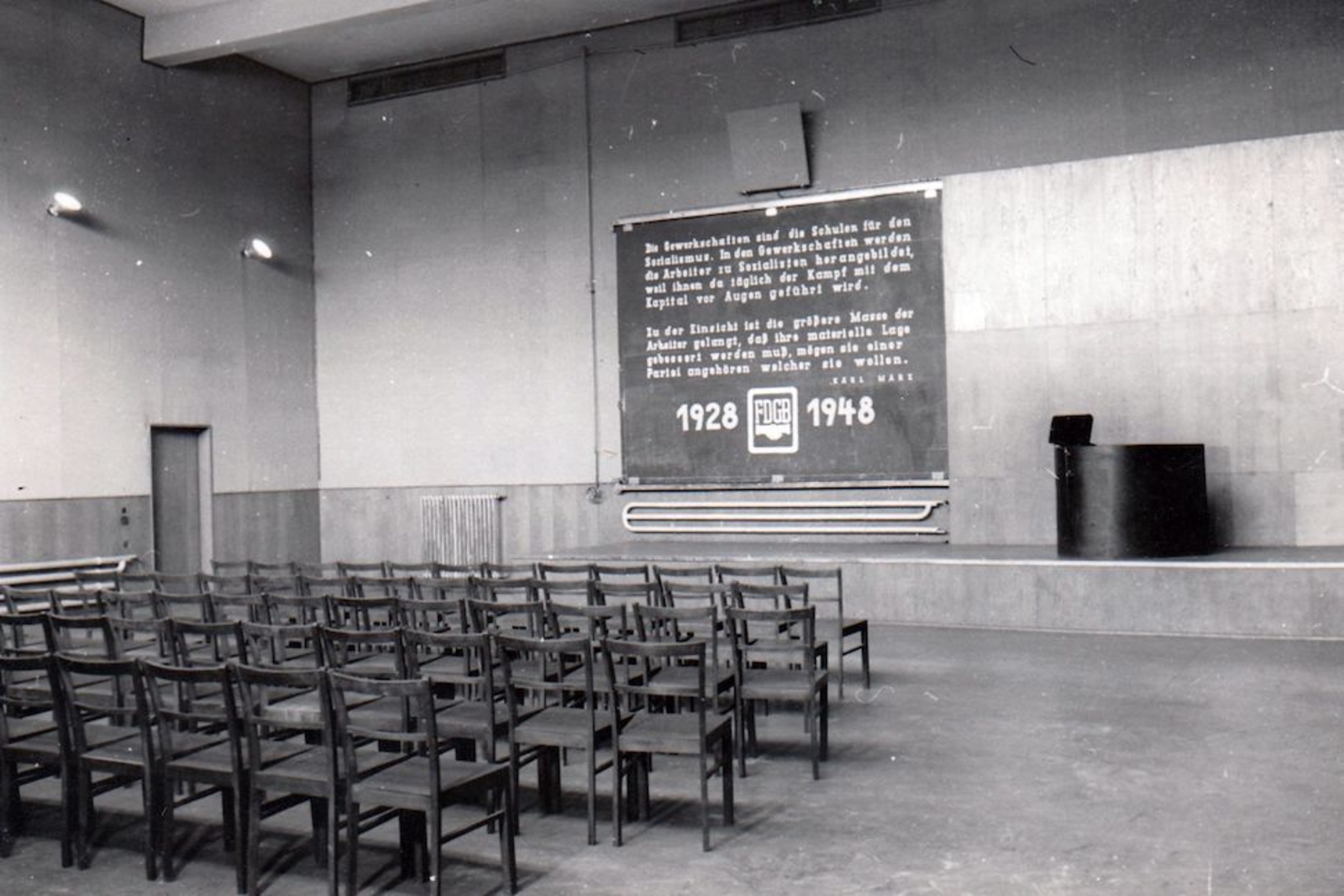 Als Hannes Meyer und Hans Wittwer 1928 die Bundesschule für den Allgemeinen Deutschen Gewerkschaftsbund (ADGB) planten, stand für sie bereits fest, dass sie dieses Gebäude grundlegend von innen (die Bedürfnisse der Menschen, die das Gebäude nutzen sollten) nach außen (der sich aus diesen Bedürfnissen ergebende Grundriss) planen würden. Auch dass hieran alle Bauhaus-Werkstätten beteiligt sein sollten, war von Anfang an gesetzt – von der Bauabteilung bis zur Ausbauwerkstatt mit Tischlerei, Metallwerkstatt und Weberei: Alle sollten gemeinsam an diesem Projekt arbeiten. Hier würden die Studierenden ihre theoretischen Fähigkeiten vertiefen und direkt am Bau in die Praxis umsetzen können.