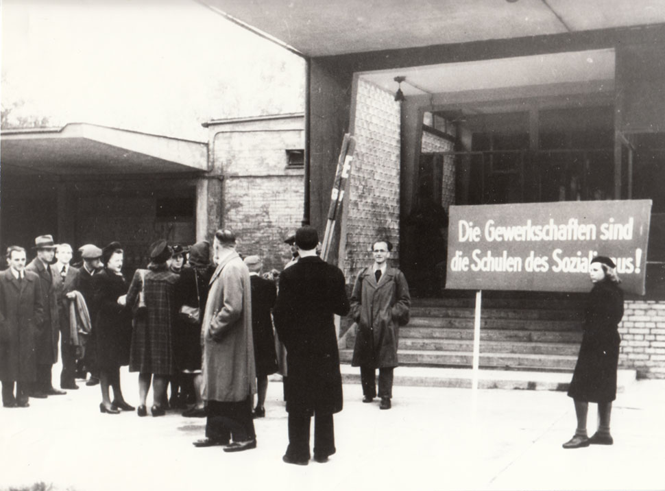 Die Stellung der Gewerkschaften in der am 7. Oktober 1949 gegründeten DDR, vor allem ihre Rolle in den Betrieben, erforderte es, immer mehr Funktionären umfassende gewerkschafts-politische Kenntnisse zu vermitteln. Am 14. Mai 1950 erfolgte deshalb die Grundsteinlegung für neue Schul-, Internats-, Verwaltungs- und Wohngebäude, die Ende 1951 fertiggestellt wurden. Den Entwurf für das Projekt lieferte der Architekt Georg Waterstradt, der bemüht war, an die Intentionen von Hannes Meyer und Hans Wittwer anzuknüpfen. Die Regierung der DDR unterstützte das Bauvorhaben mit umfangreichen Investitionen. Auch diese Gebäude sind inzwischen als Zeugnisse einer kurzen, progressiven Bauphase in der DDR denkmalgeschützt. Dazu gehört auch der Verbindungsgang zwischen den Gebäudekomplexen, der einen Bruch mit der Bauhaustradition dokumentiert. Zusammen mit den umfangreichen Umbauten des Eingangsbereichs verdeutlicht dies die Abkehr von den Ideen der Moderne.
