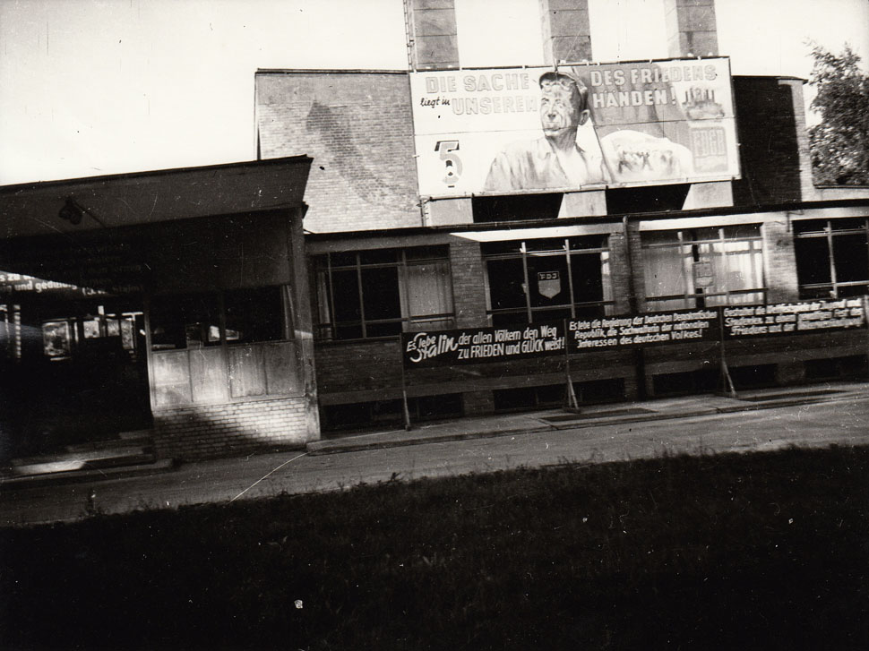 Unknown photographer, Federal Union School "Theodor Leipart": main entrance with camouflage painting, 1951, Archive baudenkmal bundesschule bernau e. V.